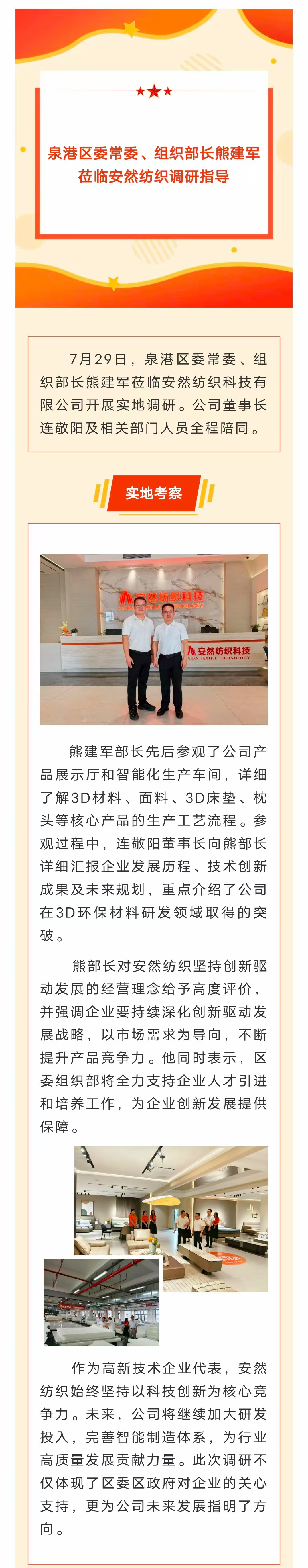 泉港区委常委、组织部长熊建军莅临安然纺织调研指导
